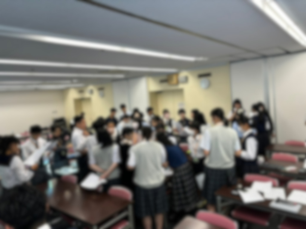 ・内容:中学3年生、高校1年生の「総合的な探求の時間」を使い、事業を行いました。「国連カフェ」を議題とし、弊協会の委員による講義とミニ会議を行いました。